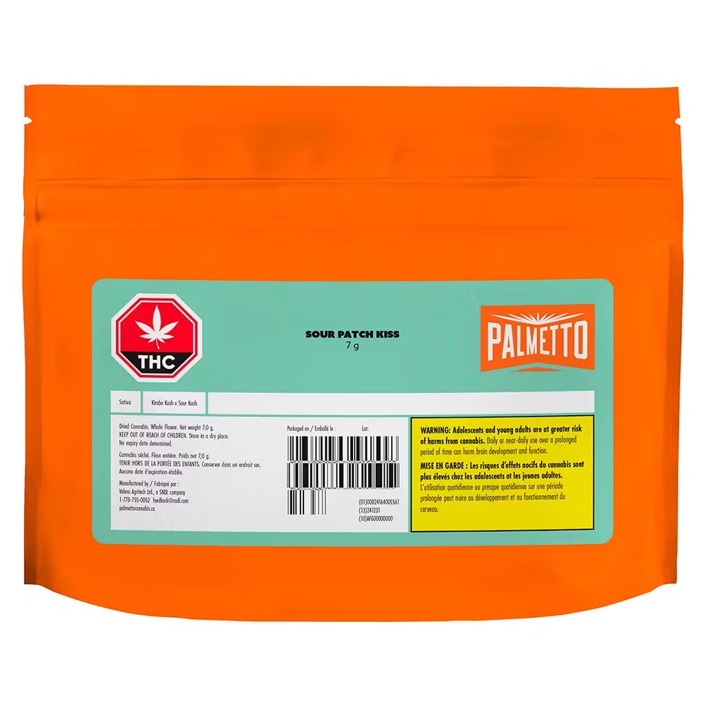Experience the perfect blend of playful strawberry sweetness and hint of tart citrus with Palmetto's newest sativa strain, Sour Patch Kiss. A cross between Kimbo Kush x Sour Kush, with mouthwatering flavours!