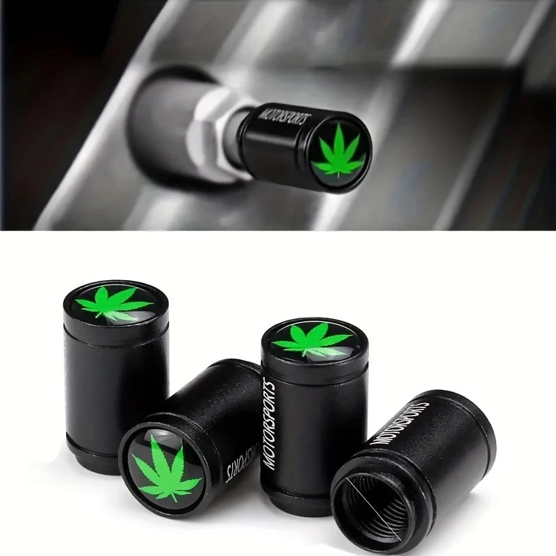 Cannabis Leaf Tire Valve Covers - Black